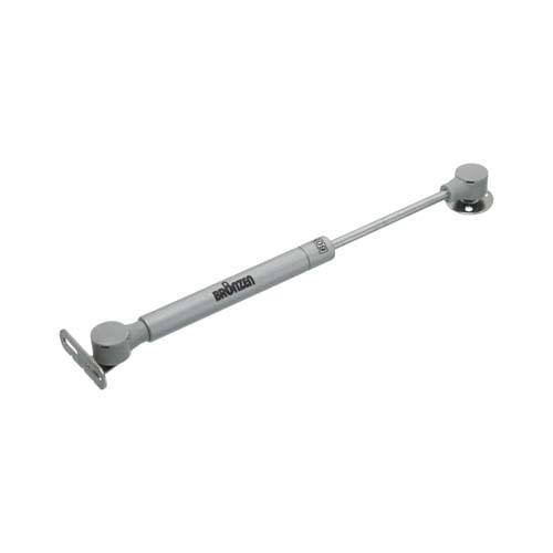 Pistón a gas para puertas elevables Apertura 75° a 110°. Para atornillar en madera o marco de aluminio. Set: 1 pistón. 2 placas de montaje para madera. 1 placa de montaje para aluminio. 5 tornillos de fijación.